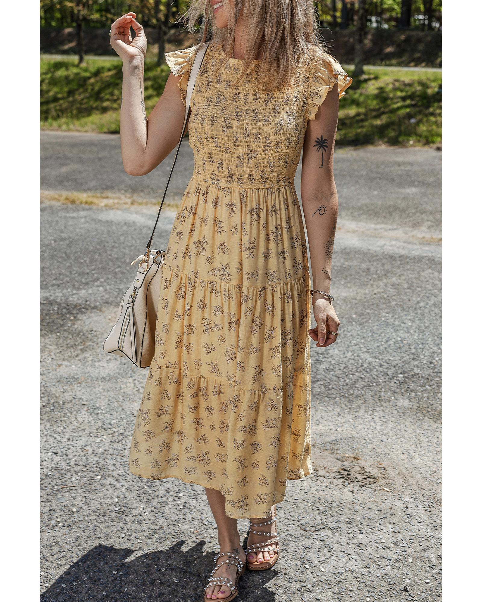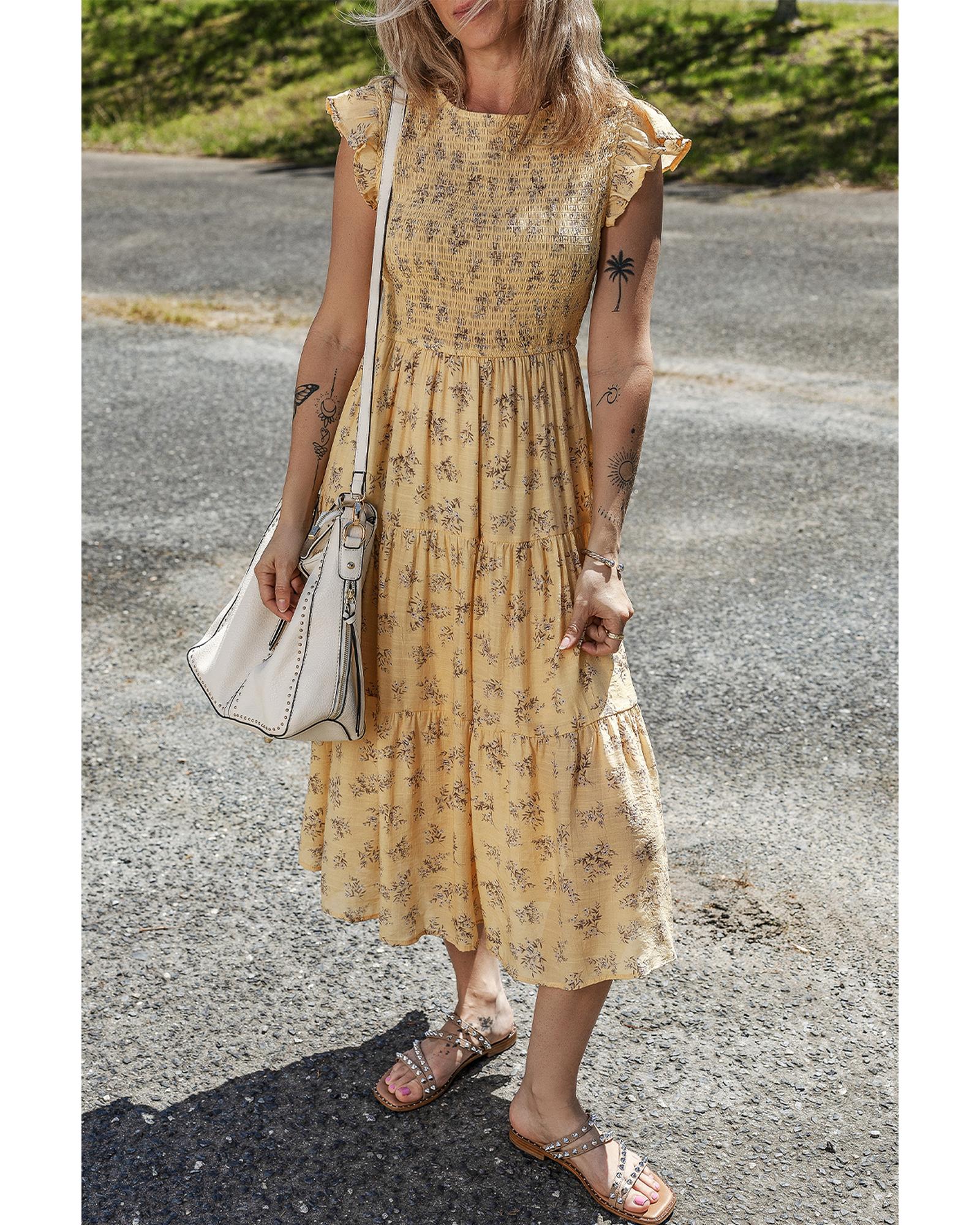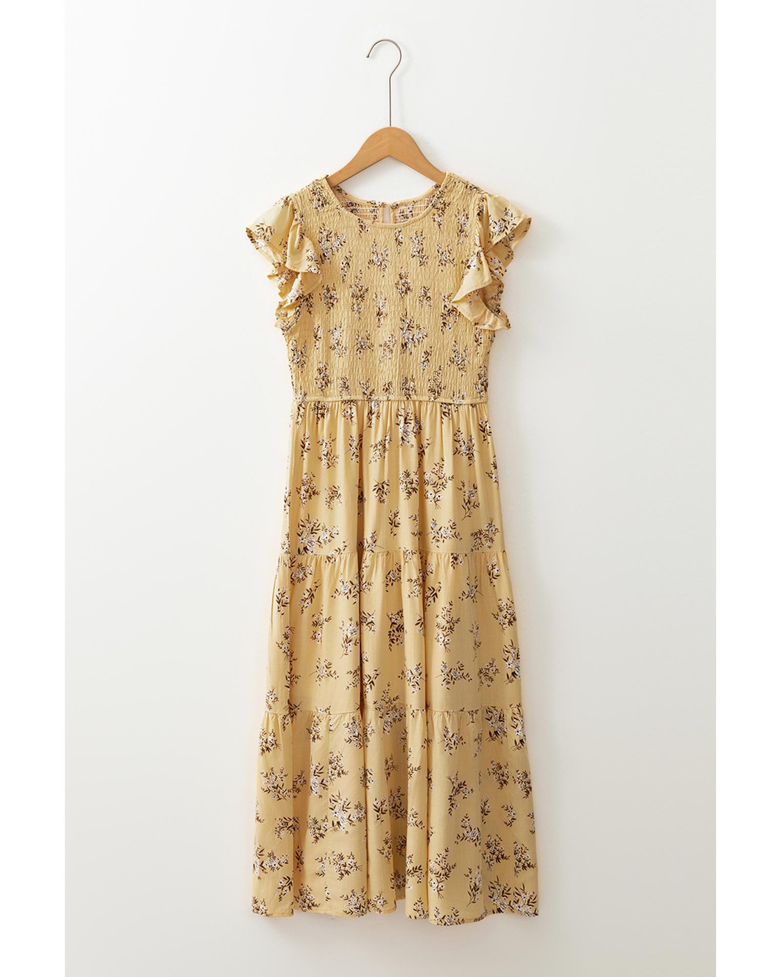 Yellow Boho Floral Print Ruffle Smocked Flowy Summer Dress – XL