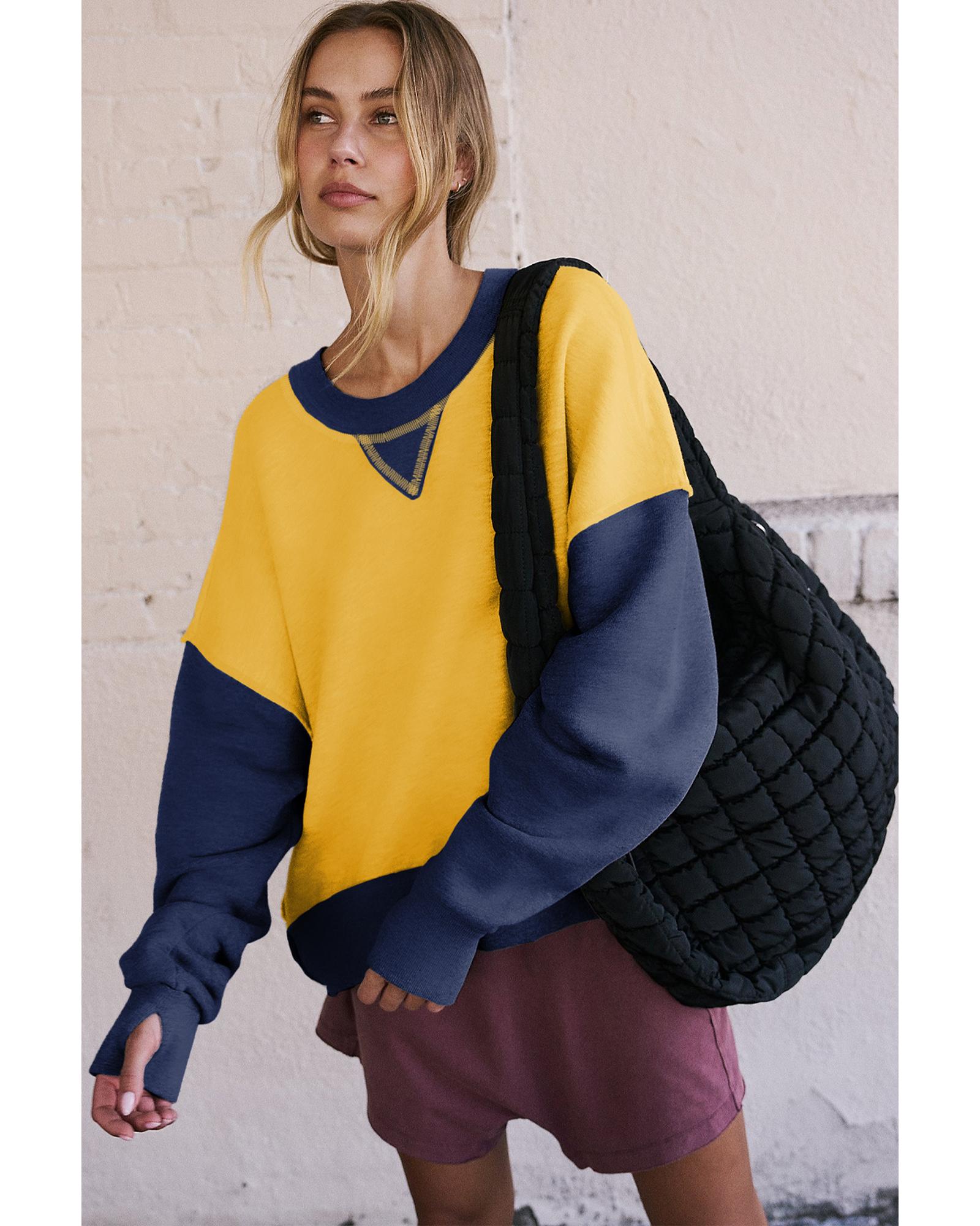 Yellow Color Block Thumbhole Sleeve Drop Shoulder Sweatshirt – S