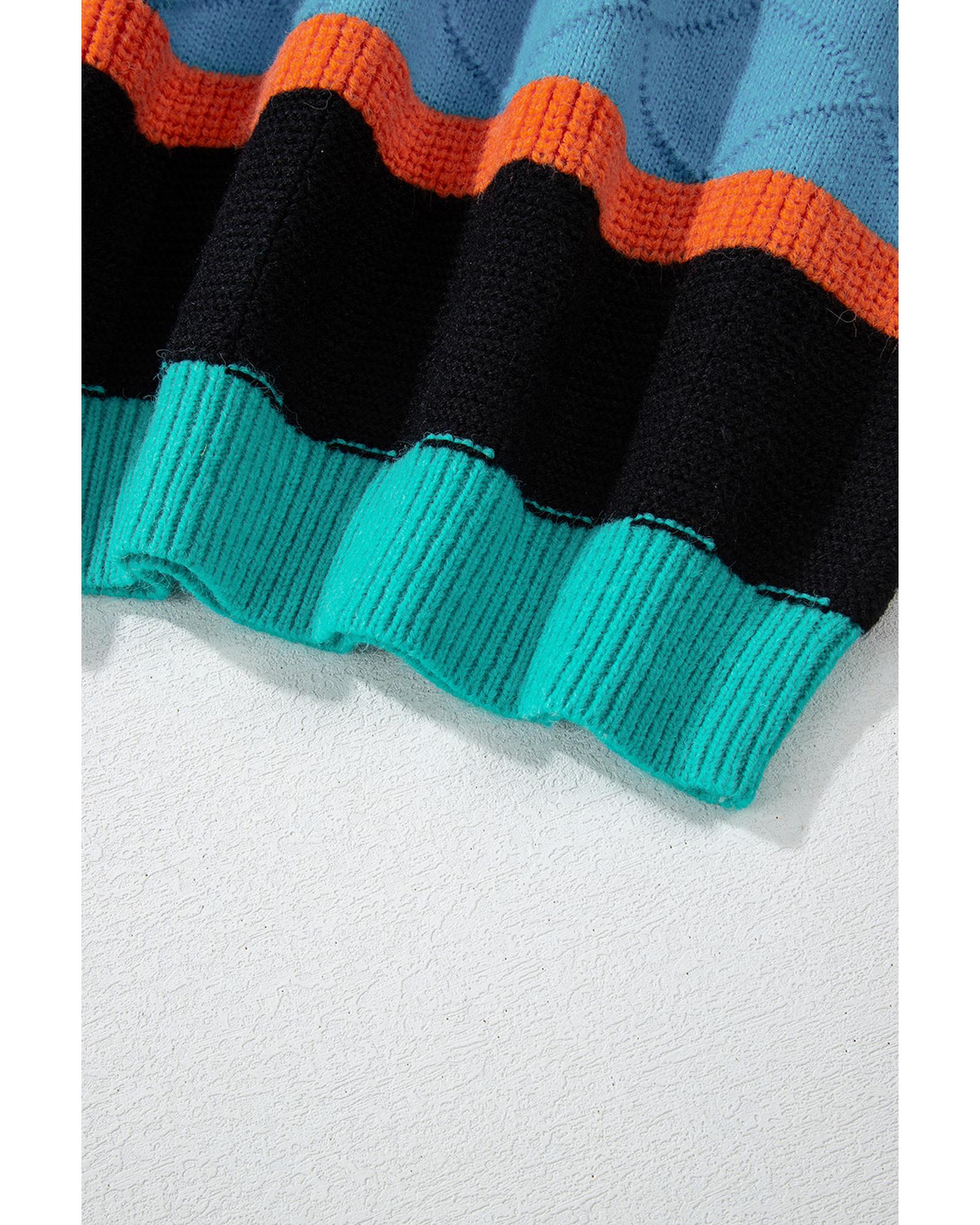 Yellow Colorblock Mixed Textured Drop Shoulder Sweater – L