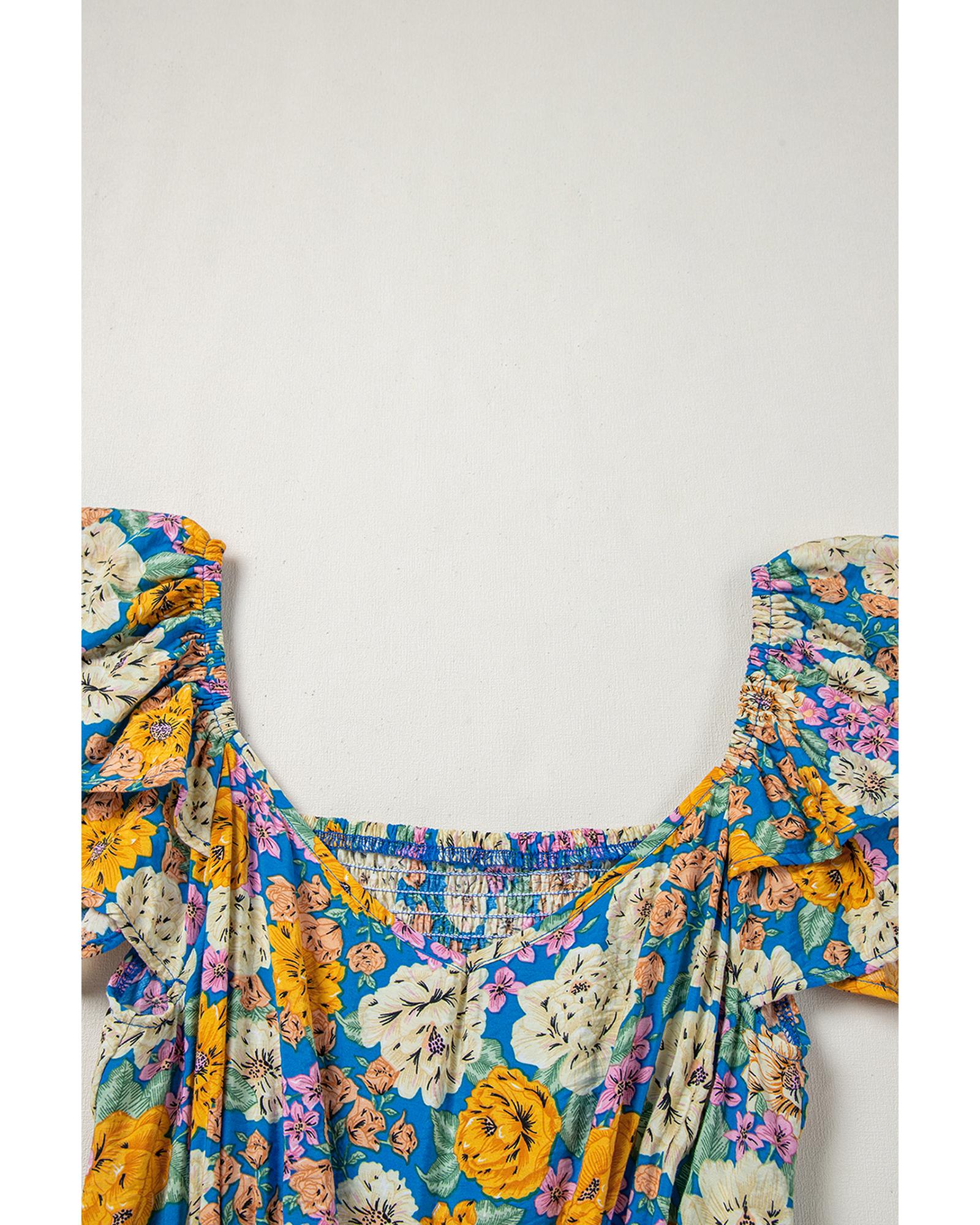 Yellow Floral Allover Print Shirred Cut Out High Waist Jumpsuit – S