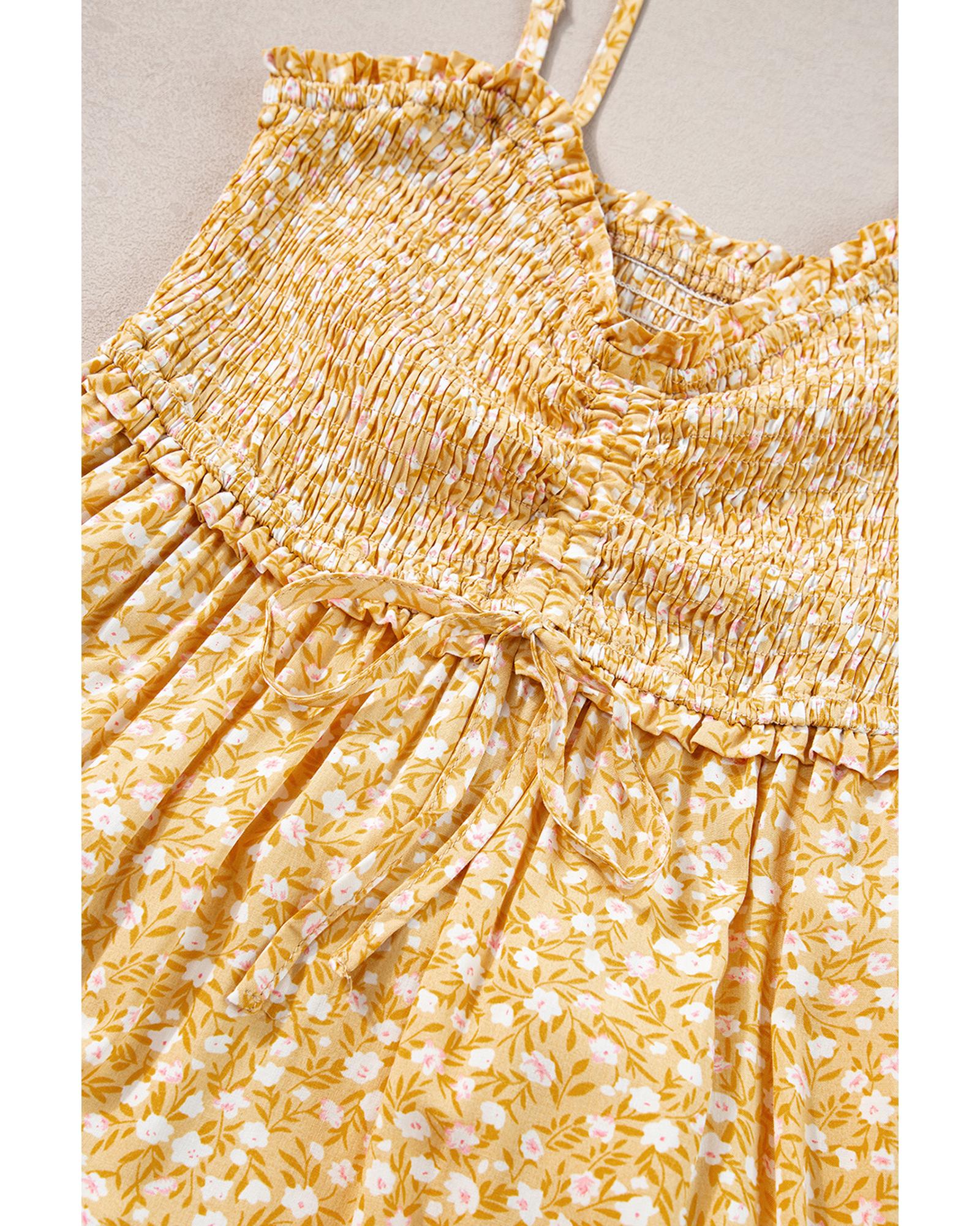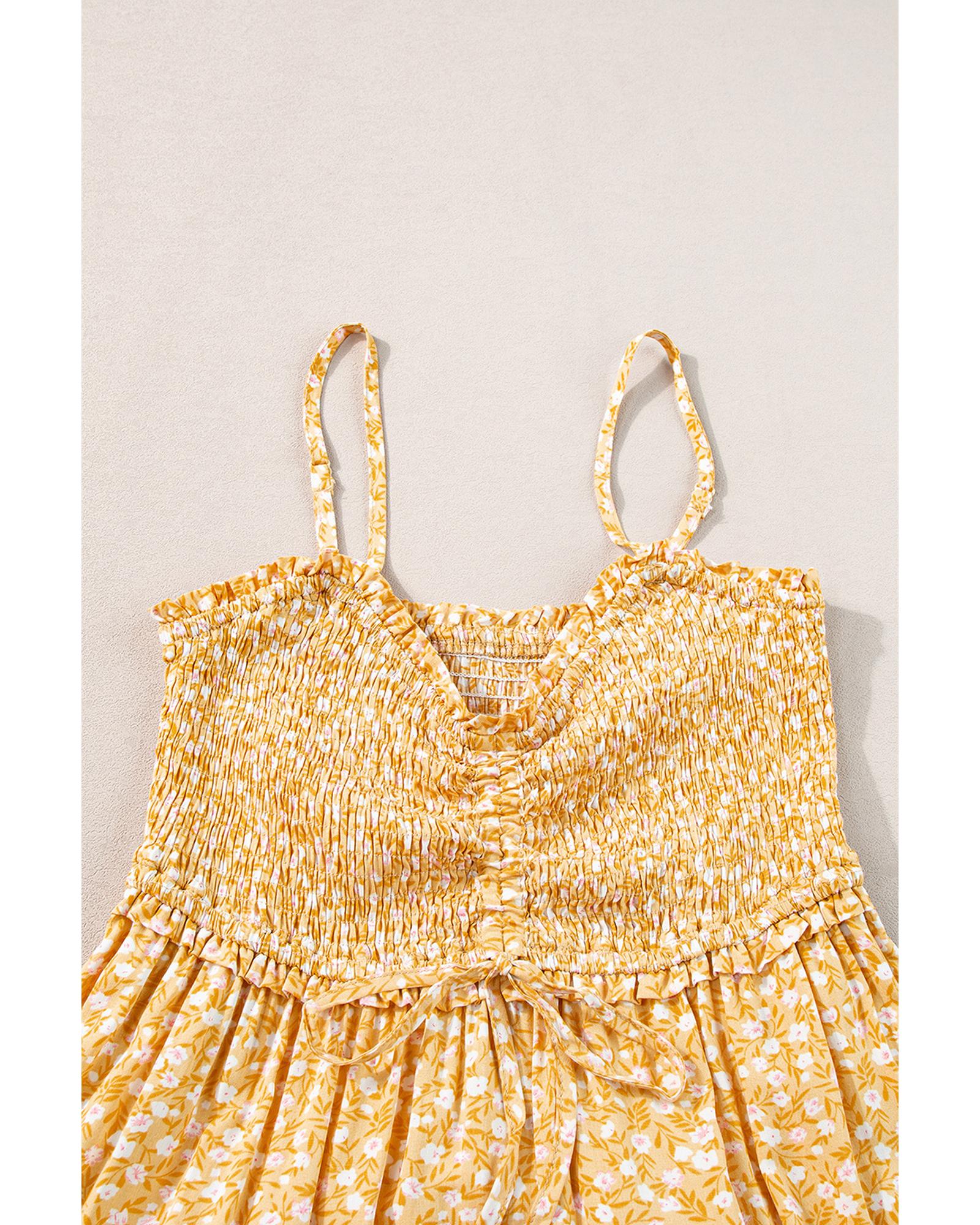 - Boho chic Yellow Frilly Smocked High Waist Floral Maxi Dress