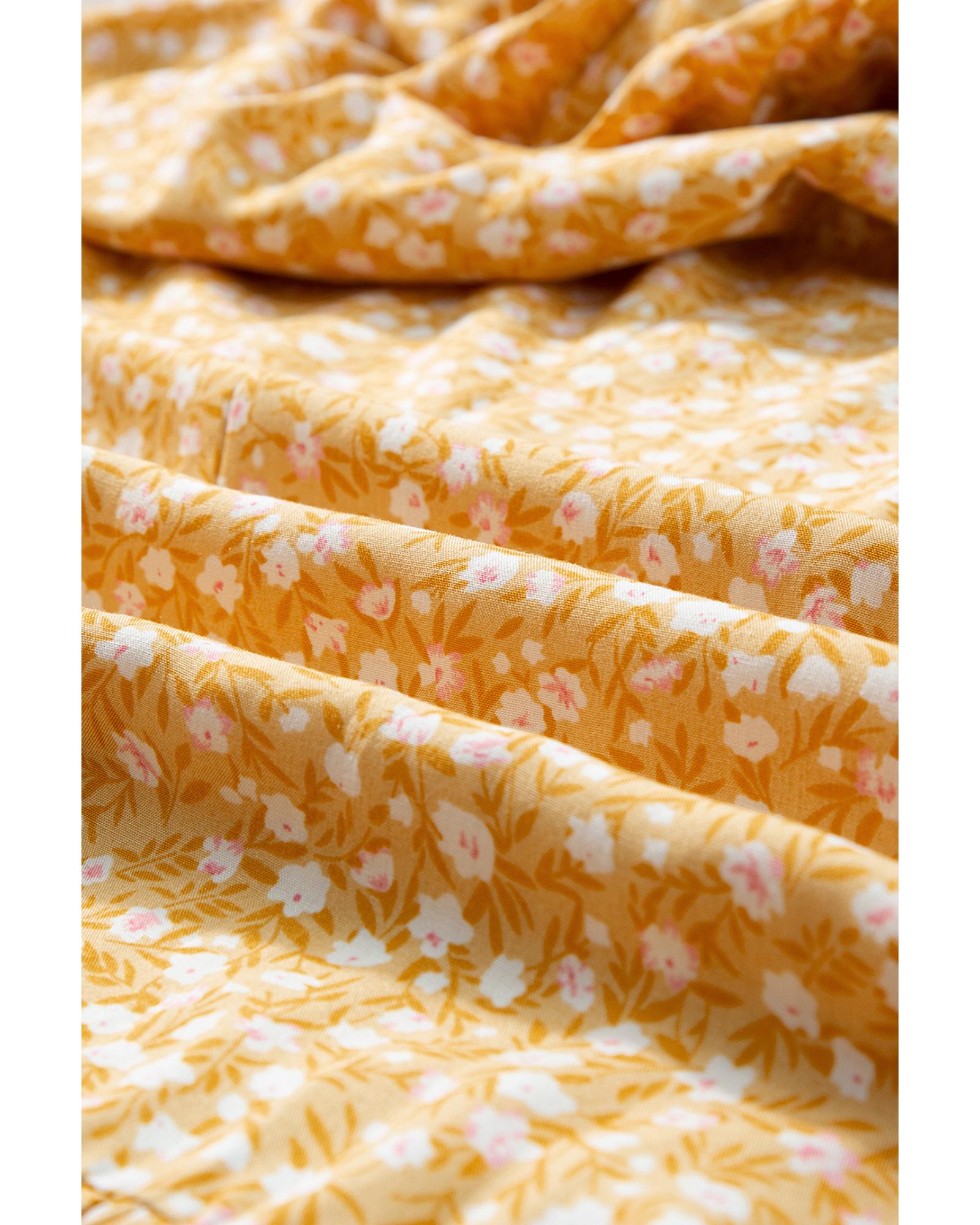 - Delicate floral print and ruffled trim for a feminine touch