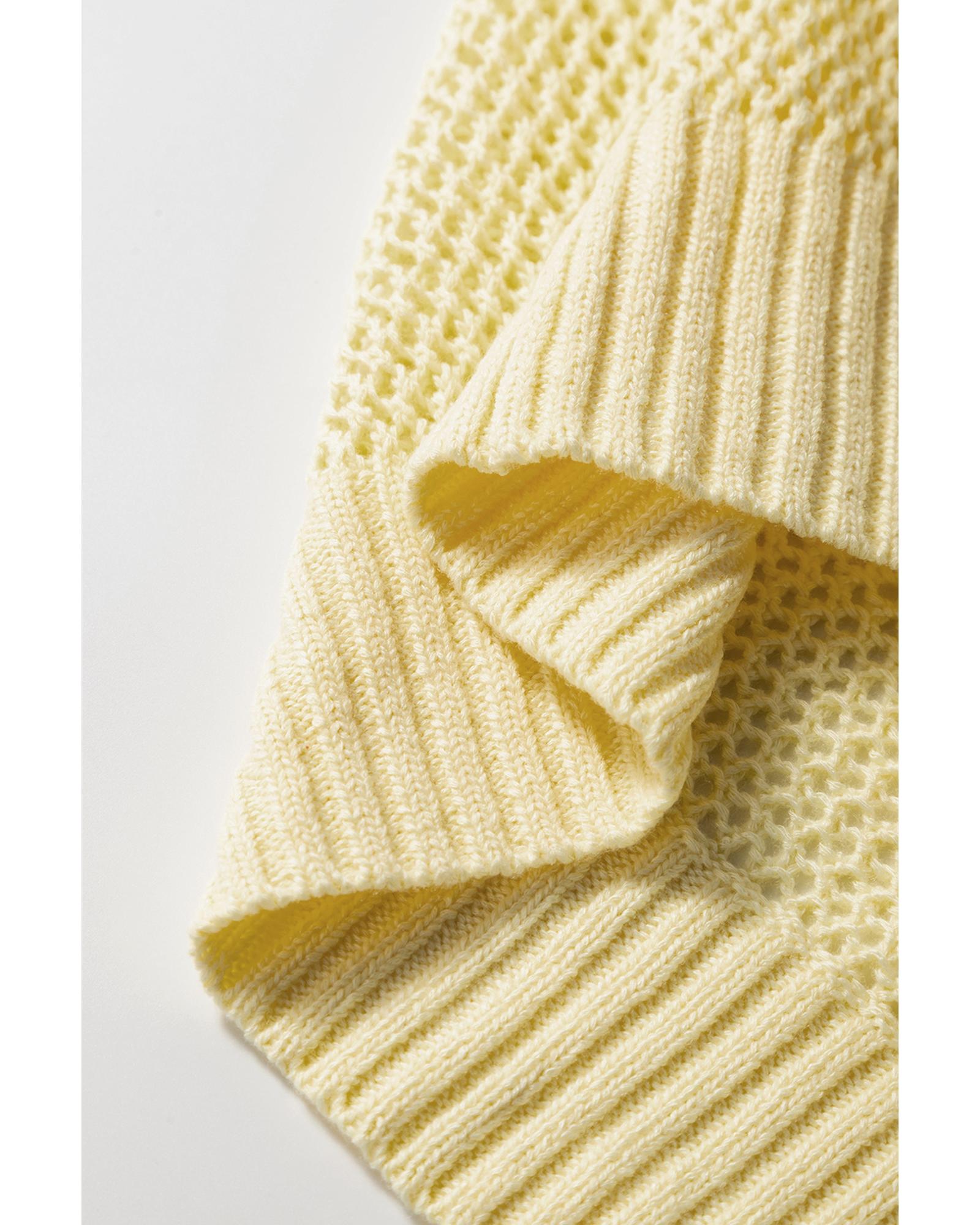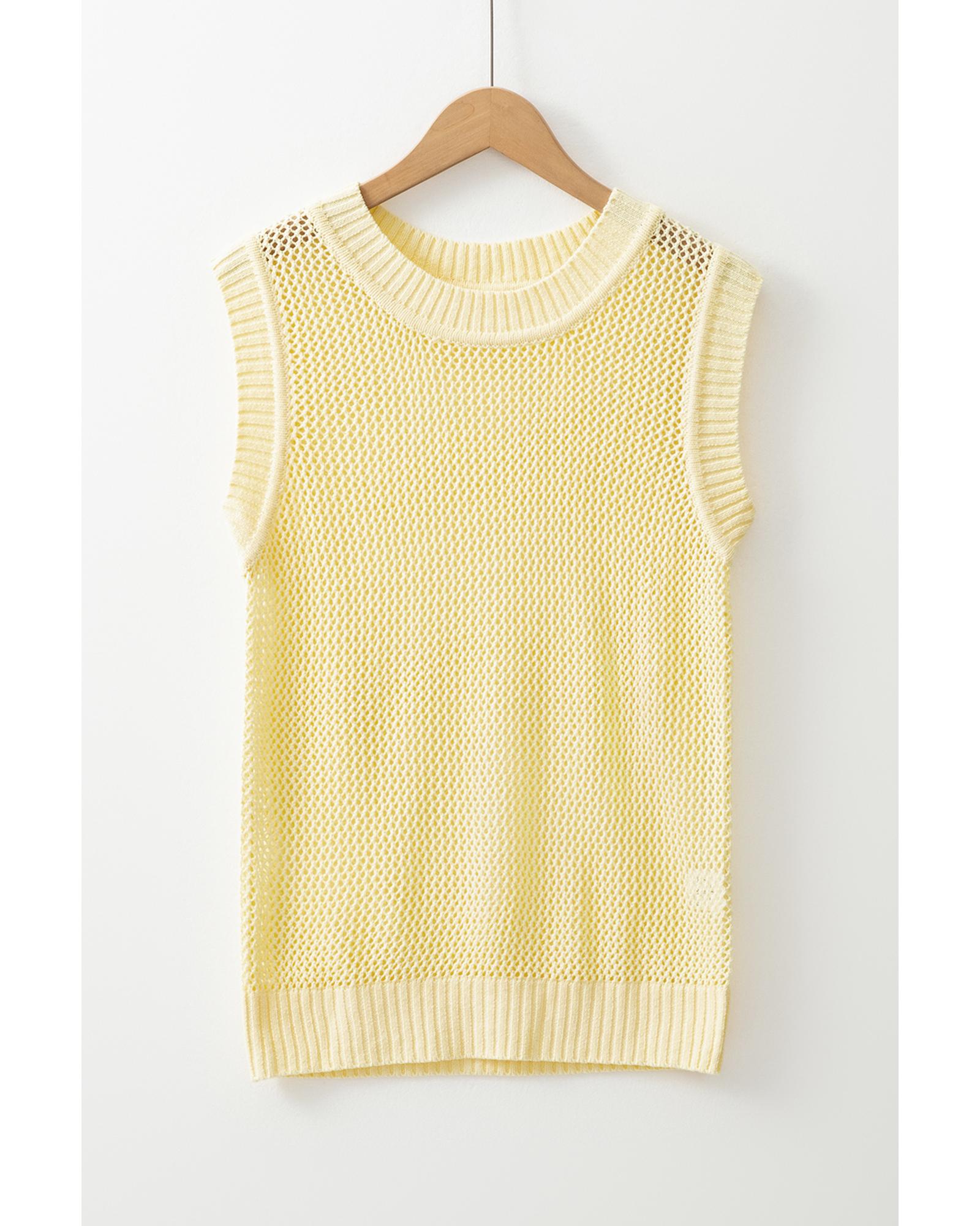 Yellow Solid Color Hollowed Knit Round Neck Sweater Vest – XL