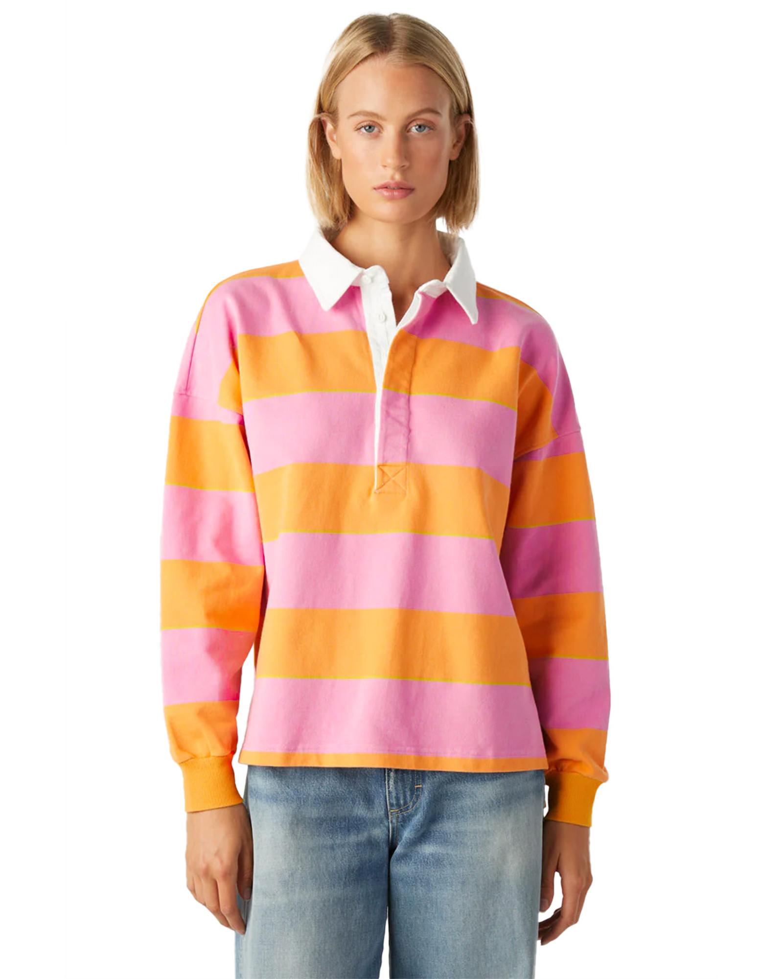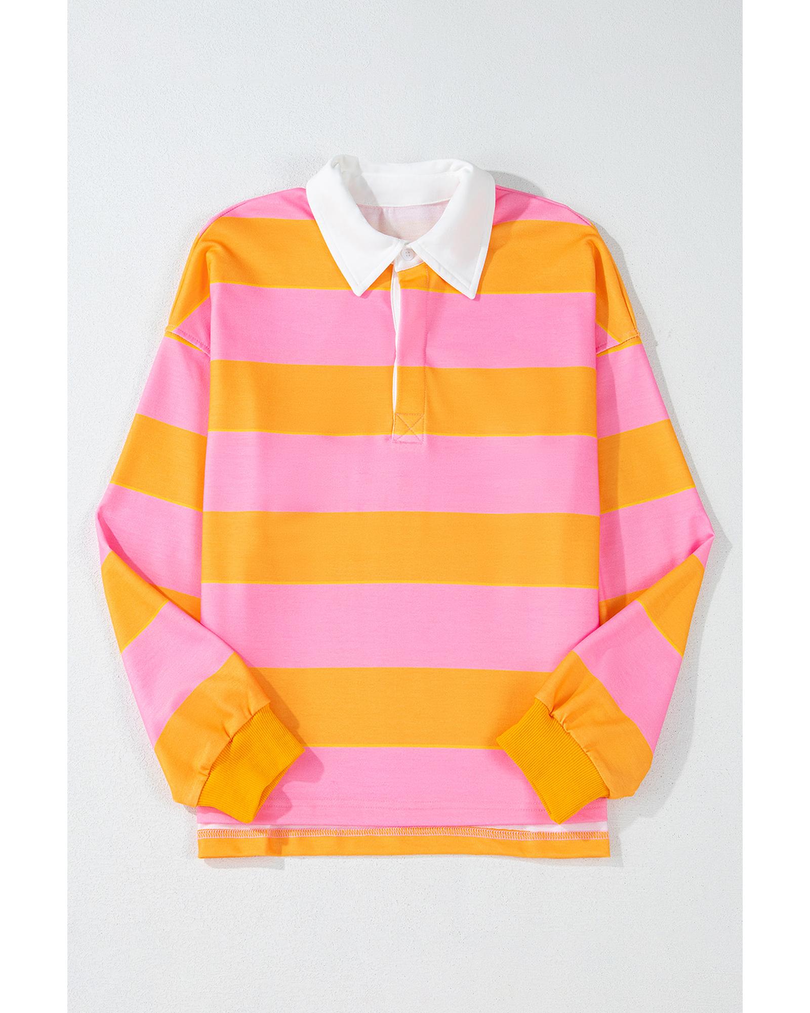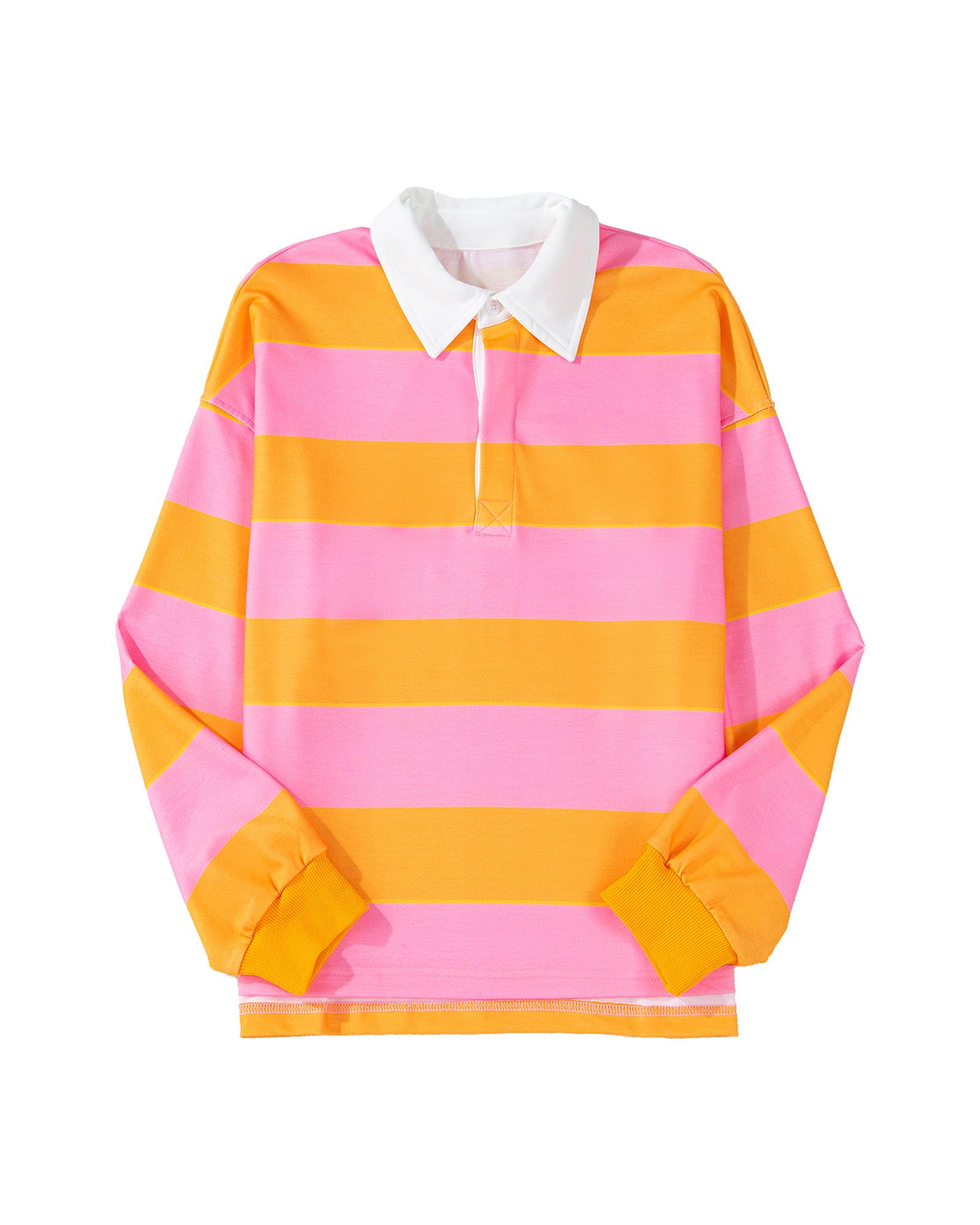 Yellow Stripe Color Block Polo Collar Sweatshirt – S