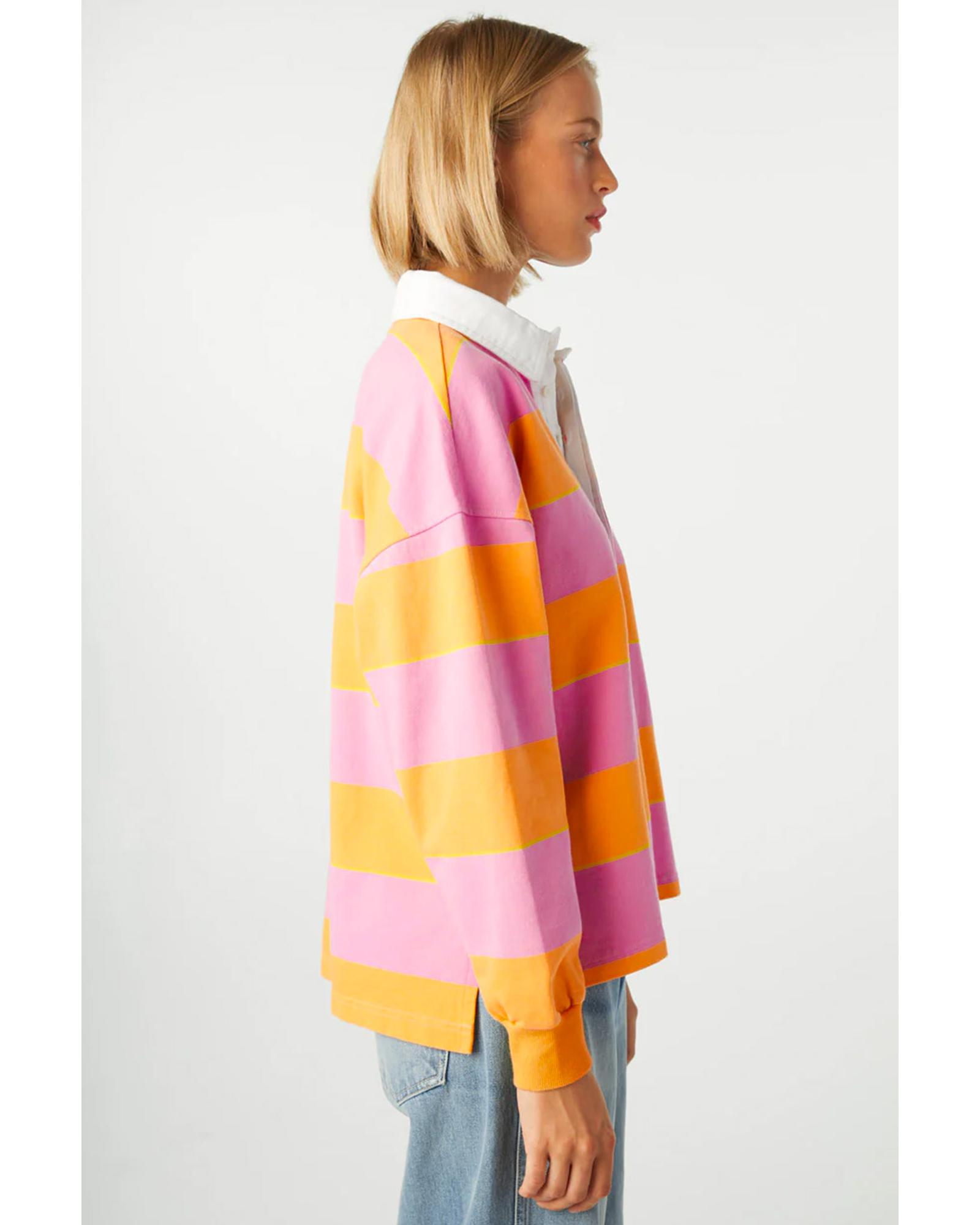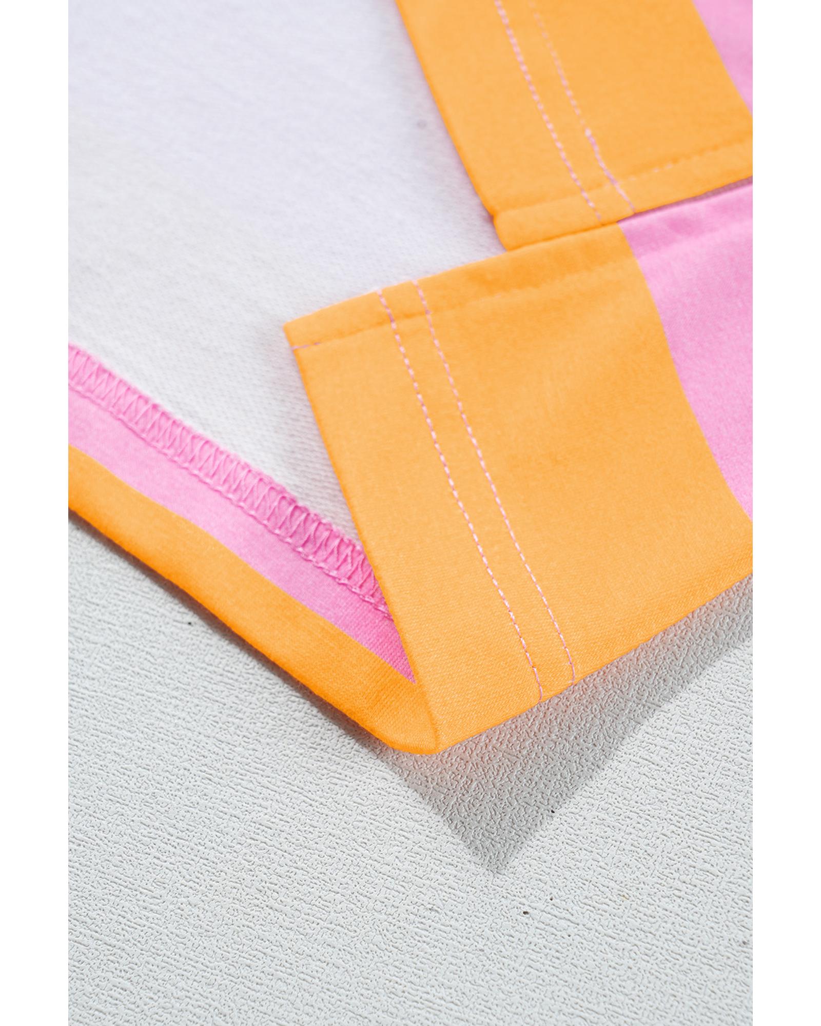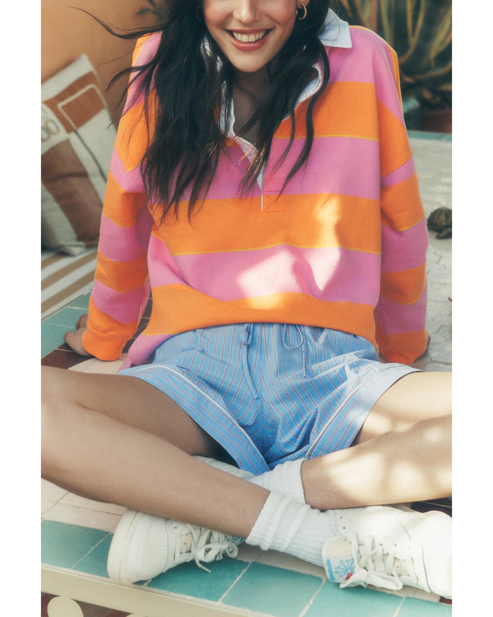 Yellow Stripe Color Block Polo Collar Sweatshirt – XL