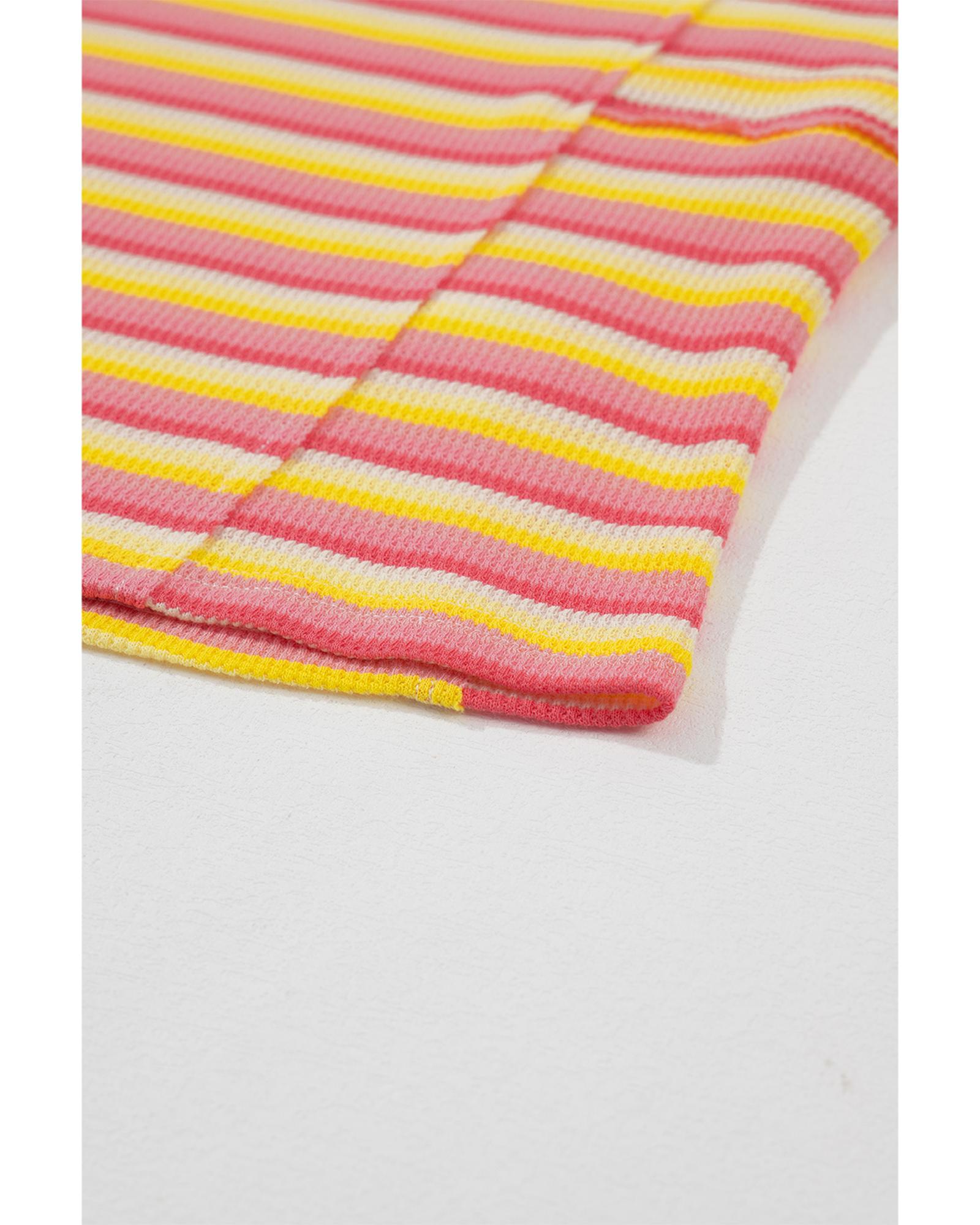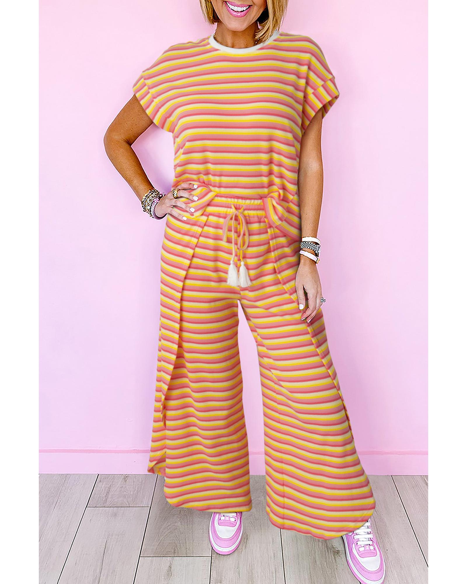Yellow Stripe Rainbow Tee Tasseled String Wide Leg Pants Set – M