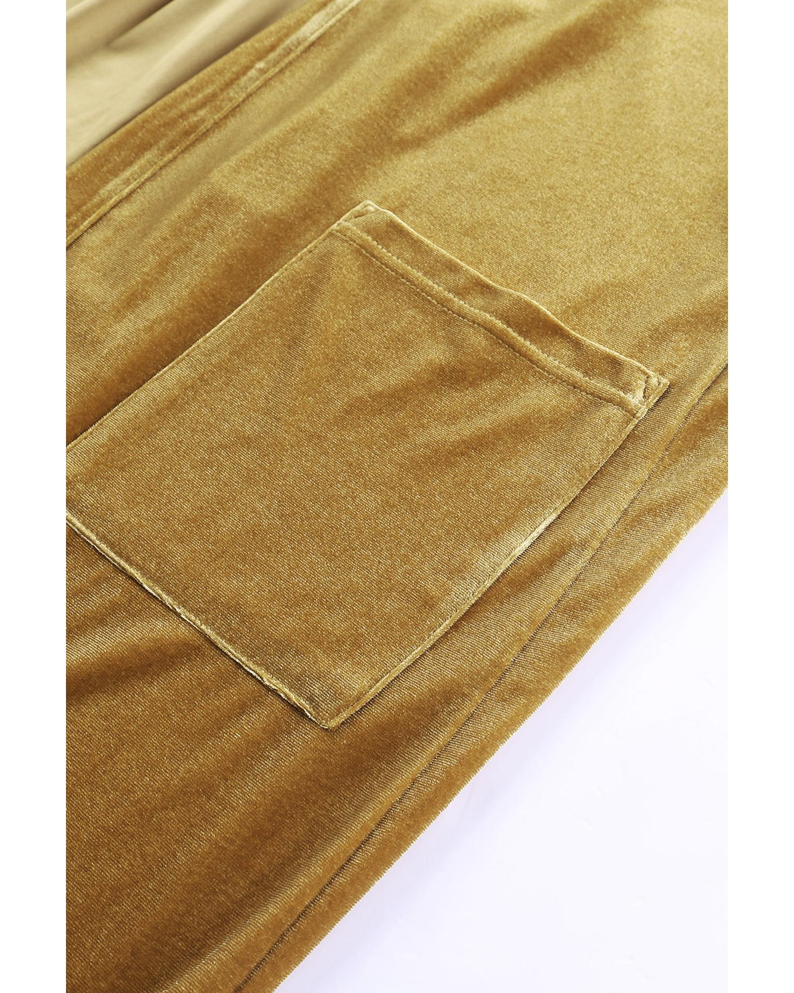 Yellow Velvet Open Front Pocketed Long Duster – L